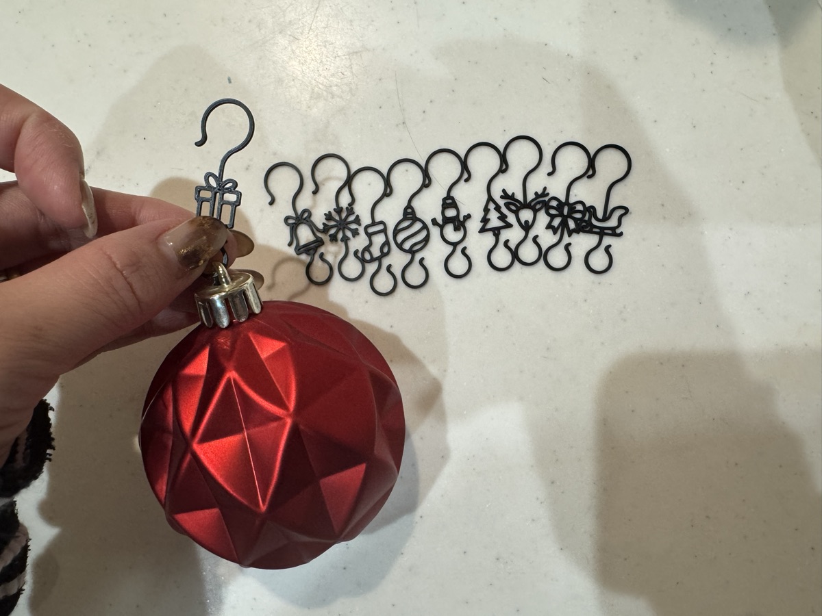 妻のリクエストで、クリスマスシーズンのツリー用の飾りフックを印刷しました。